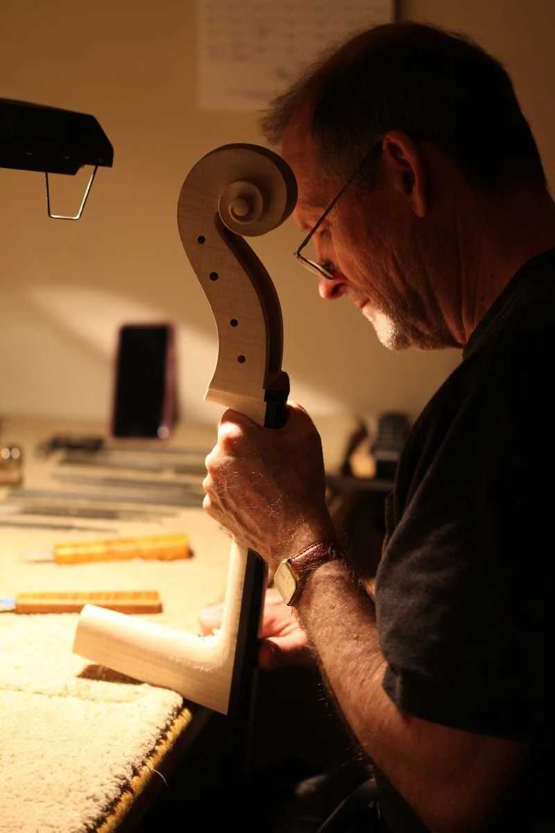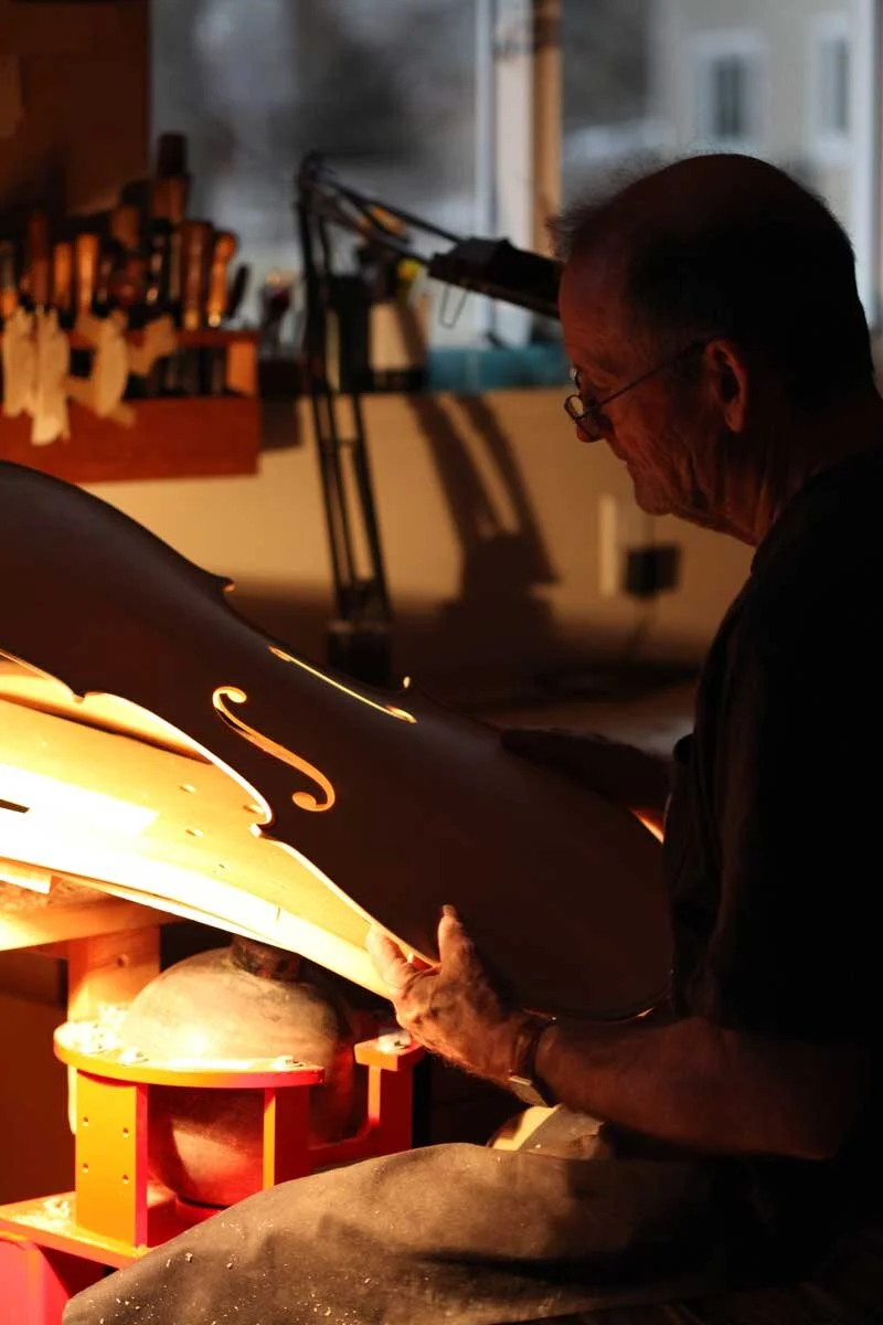 Before submitting a request to be placed on Christopher’s waiting list, he will find a former client in your area. Voice, style, model, wood, and varnish can all be assessed before meeting with Christopher to guarantee your choice of cello.